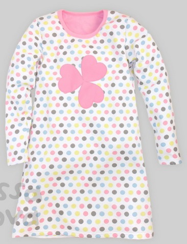 Ночная сорочка свободного покроя с длинным рукавом. Мягкая, приятная для тела. Выполнена из принтовоного футера и украшена милым принтом. Воротник из контрасного полотна.