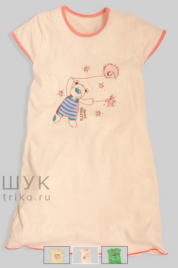Ночная сорочка свободного покроя с короткими рукавами. Модель легкая, приятная для тела. Выполнена из тонкого трикотажа и украшена милым принтом. Низ сорочки обработан строчкой "кардане".