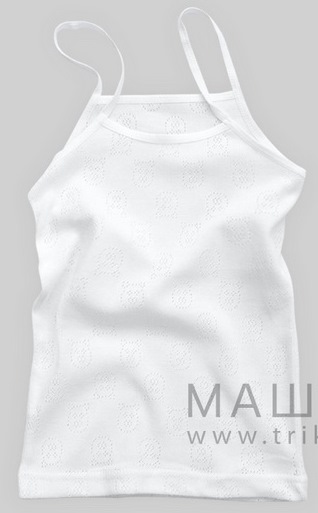 Модель прямого силуэта на узких бретелях. Низ изделия обработан швом вподгибку.