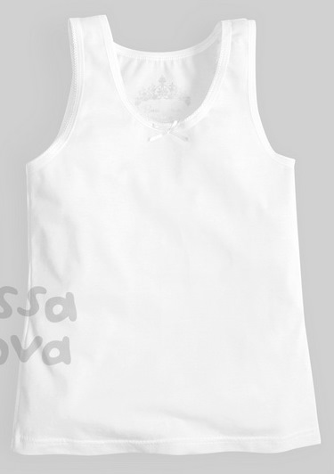 Майка для девочки на широких бретелях. Горловина и проймы обработаны ажурной резинкой.