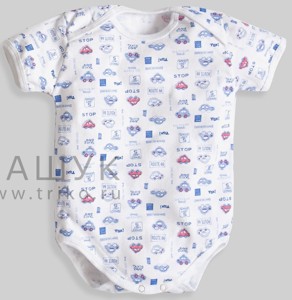 Боди с округлым вырезом горловины и короткими рукавами. Изделие с застежкой на кнопки. Замечательно подойдёт для детского ежедневного гардероба.