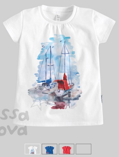 Футболка с "морским" принтом. Горловина присборена и обработана эластичным воротником. Украшена стразами. Удобно и стильно каждый день.