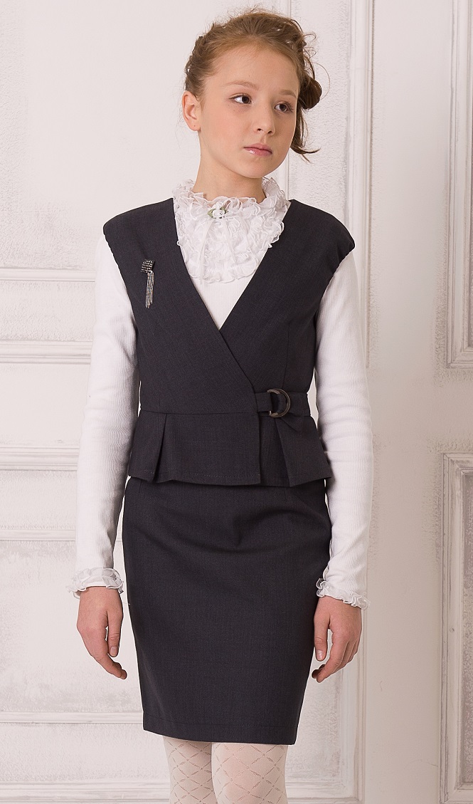 Жилет на запахе с декоративной пряжкой.