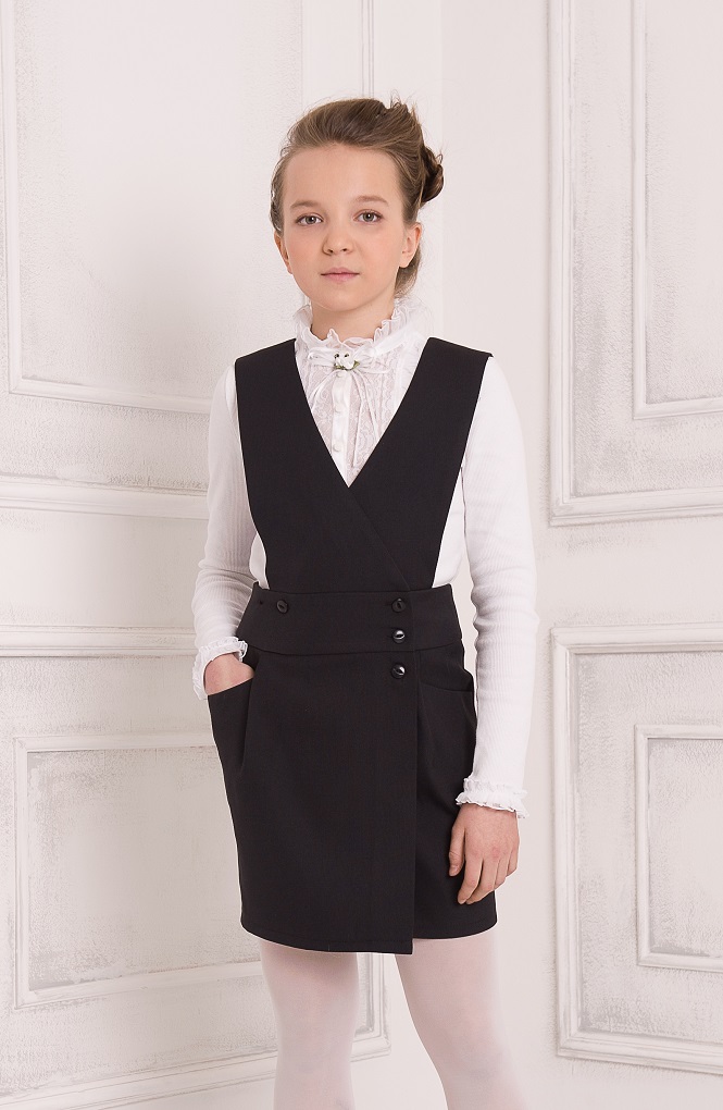 Сарафан с запахом, карманами и складками.
