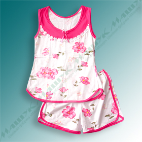 Низ сорочки и шорт отделаны бейкой.