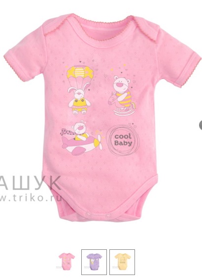 Боди с округлым вырезом горловины и короткими рукавами. Изделие с застежкой на кнопки. Замечательно подойдёт для детского ежедневного гардероба.