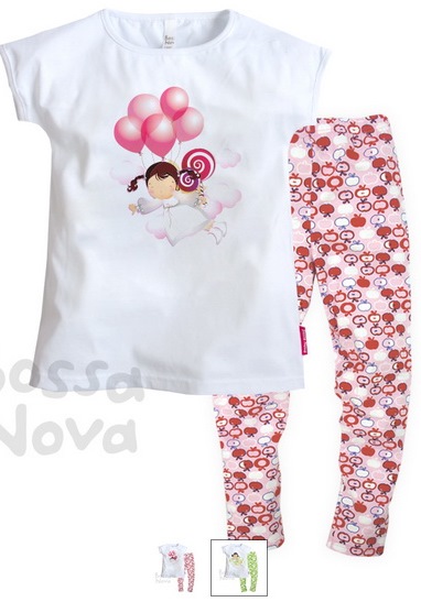 Летний комплект для девочки. Состоит из эластичных ярких лосин и белой футболки с принтом. Горловина и проймы обработаны бейкой.