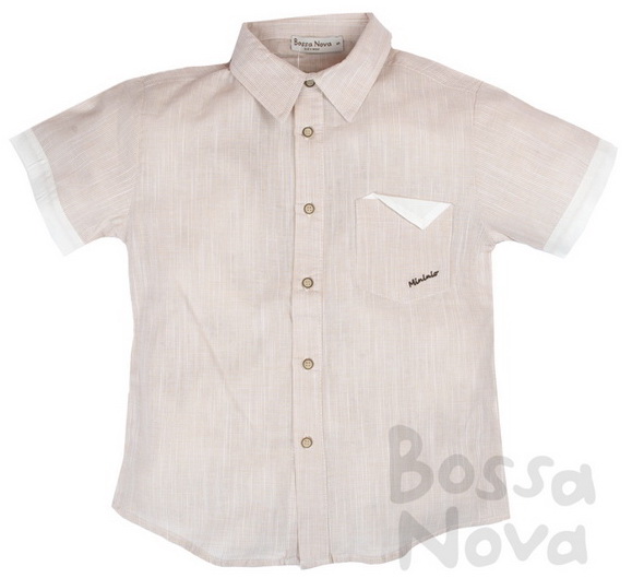 Рубашка для мальчика с коротким рукавом. Застежка центральная на петли и пуговицы. Нагрудный накладной карман. Воротник отложной со стойкой. Рукава с отворотами. На полочке вышивка. Декоративный бант на воротнике.