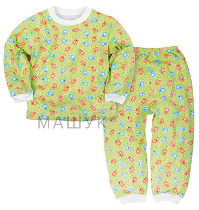 Пижама для девочки состоит из джемпера и бриджей. Джемпер прямого силуэта, длина рукава 3/4. Горловина обработана эластичным воротником. Низ джемпера распошит швом вподгибку. Рукава и низ бриджей обработаны манжетом. Верх бриджей обработан швом вподгибку с прокладыванием эластичной тесьмы (вздежка). Удобная вещь на каждый день.