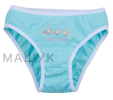 Описание: Трусы для девочек с узким боком. Верх изделия и ножки обработаны резинкой на сгиб. Украшены принтом.