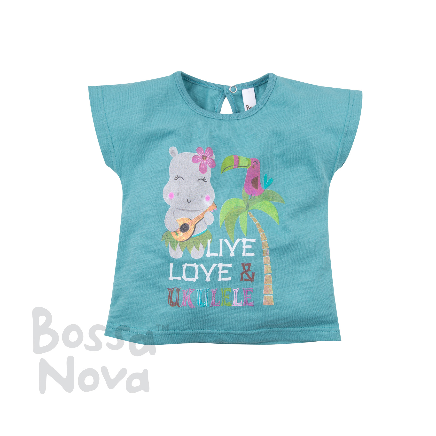 Описание: Футболка для девочки с цельнокройным рукавом. Горловина обработана бейкой. Застежка на спинке на кнопку. На полочке принт.
