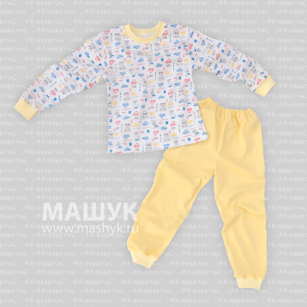 Низ джемпера распошитшвом вподгибку. Рукава и низ брюк обработаны манжетом.