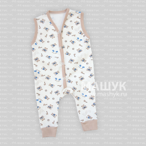 Полукомбенизон без рукавов с манжетами на ножках.