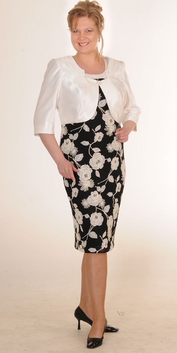 Костюм 2-ка. Платье из кружевной ткани, облегающего силуэта на шифоновой подкладке с отделкой из ткани болеро.