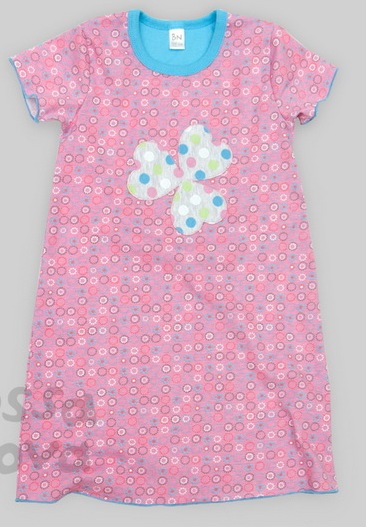 Яркая, симпатичная ночная сорочка свободного покроя с короткими рукавами. Модель легкая, приятная для тела. Выполнена из тонкого принтованного трикотажа и украшена милой аппликацией.
