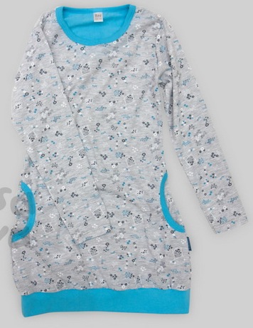 Очаровательная туника с длинными рукавами и округлым вырезом горловины. Выполнена из высококачественного принтованного трикотажа. Дополнена удобными карманами. Низ изделия на эластичной манжете.