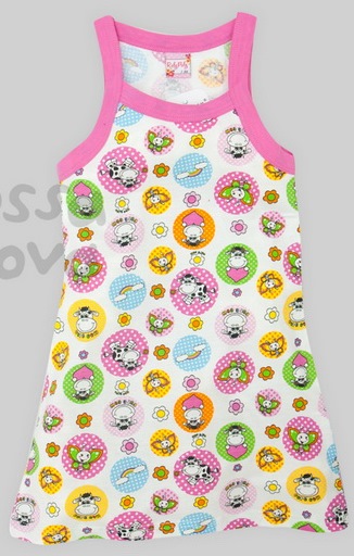 Сорочка без рукавов с округлым вырезом горловины. Обработана яркой бейкой. Свободный покрой. Отличный вариант на каждый день.